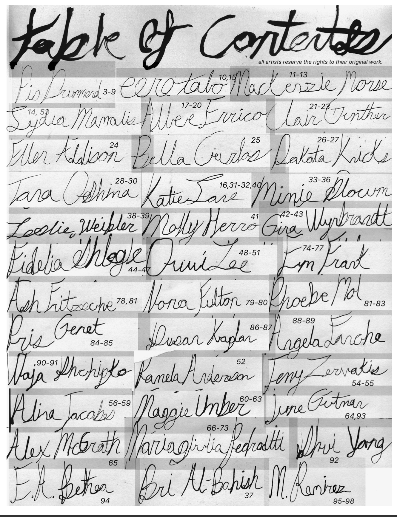 36 artists: lydiamaydine, gittishow, betheacomics, eero.talo, bella.carlos, fideliaschlegl, jennyzervakis, june_sniff, wajashchipko, dakotaknicks, imbyoo, forever4pm, 223buttercup223, dogwithnoteeth, meatmolls, ash_fffff, maggieumber, proninny, tanaoshima, wynbr, ratsvvarm , nora_c_f, moth_prom, susanbamboozin, imbyoo, pio2ho, i_knew_of_rooftops, mvck3nz13, clairgunther Leslie Weibeler, emandplum, windcruel , shuai.yang.studio, brialbahish