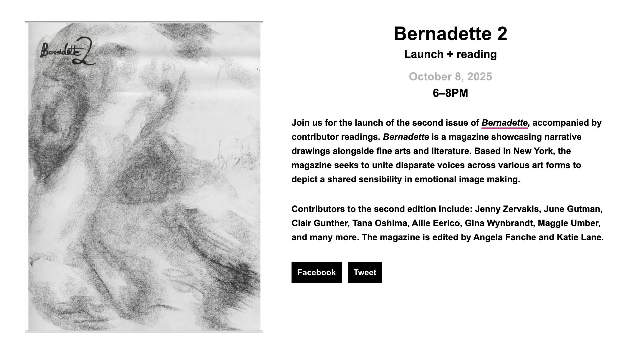 27+ artists: Jade Mar, Molly Dwyer, Ana Woulfe, Sarah Kirby, Ash Fritzsche, Mei Kanamoto, Sam Seigel, Arta Ajeti, Kailin Hartley, Bri Al-Bahish, Marlene Frontera, Liza Kotlar, Sam Szabo, Lala Albert, Liv Forcey-Rodriguez, Mary Moore-Dalton, Vera Bekema Gabrielle Bell, Clair Gunther, Hannah Lee, Lydia Mamalis, Charlotte Pelissier + Juliette Collet, Sarah Lammer, Lily Maslanka, Oli Lee, Karyn Nakamura